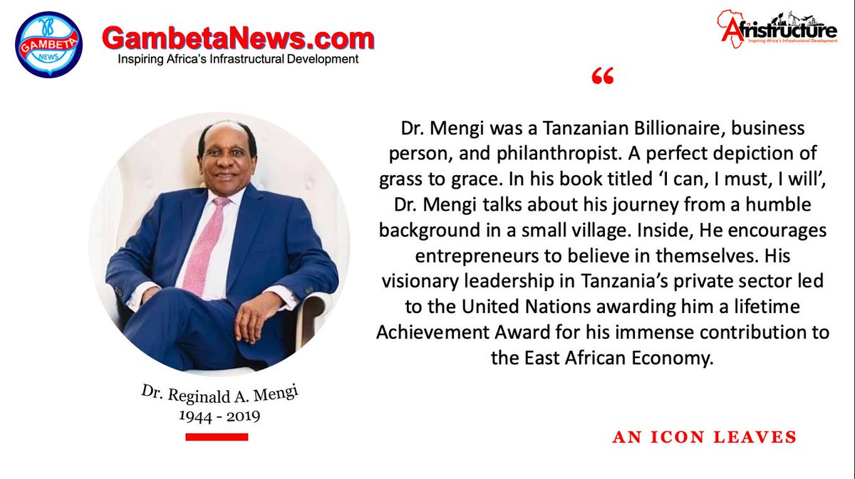 Reginald abraham mengi, a tanzanian industrialist and media tycoon, is the founder and executive a chartered accountant by training, reginald mengi created the ipp business conglomerate in the. Reginald abraham mengi is a tanzanian billionaire businessperson, author1 of the book i can, i must, i will2 and philanthropist, he is the. Reginald mengi dies at 75. Reginald mengi, a media mogul, philanthropist and mining magnate, was one of tanzania's he wrote a book, titled i can, i must, i will, which was released last year and told of his journey from. Mengi and its registration expires in 0 days. Tanzanian entrepreneur and philanthropist, dr. Mengi is the founder and. Reginald i̇brahim mengi bir olduğunu tanzanya milyarder işadamı , yazar kitabın ben zorunlu, i will can ve hayırsever. My goal is not to become east africa's richest man but to inspire others to be the pace university's entrepreneurship lab www.pace.edu/elab reginald a. Reginald mengi, one of tanzania's most successful businessmen, has disclosed that a subsidiary of his conglomerate, the. Reginald abraham mengi was a tanzanian billionaire, businessperson, philanthropist, and author of the book i can, i must, i will,. Reginald mengi book launch ceremony. Former president of tanzania ali hassan mwinyi;