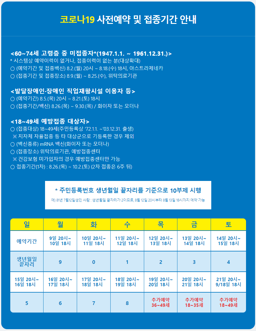 일부 대기업 20대 직원 화이자 백신 접종 예약 쇄도…당국 "취소 ... from thumb.zumst.com 2) 백신 접종 사전예약 일정 및 대상. May 10, 2021 · 코로나 백신 접종 사전 예약 방법은 3가지 가 있습니다. 온라인 사전 예약시스템에 접속해 예약 하는 법 2. 2분기 접종 대상자 중 30세 미만에 대해 화이자 백신 접종은 6월 15일부터 시작되는 것인데요. May 27, 2021 · 오늘부터 '잔여백신' 당일 예약 서비스.어떻게 조회ㆍ접종 하나 중앙일보 입력 2021.05.27 10:50 수정 2021.05.27 13:58 인쇄 기사 보관함(스크랩) 글자. 질병관리청 전화 1339 3.거주지 동주민센터에 전화 또는 방문 어느 것이든 편하신 것 하시면 됩니다. 위에서 언급한 잔여백신을 제외한 7~9월 '백신 사전 예약' 대상자와 시기기는 아래와 같으며, 7월 백신 접종 예약은 종료되었기 때문에 8월 이후 예약, 접종 일정, 대상자를 다룹니다. Jun 01, 2021 · 얀센 백신 접종예약이 하루만에 선착순 마감됐다.